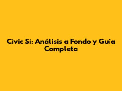 Civic Si: Análisis A Fondo Y Guía Completa