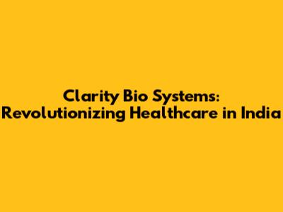 Clarity Bio Systems: Revolutionizing Healthcare In India