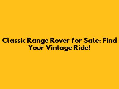 Classic Range Rover For Sale: Find Your Vintage Ride!
