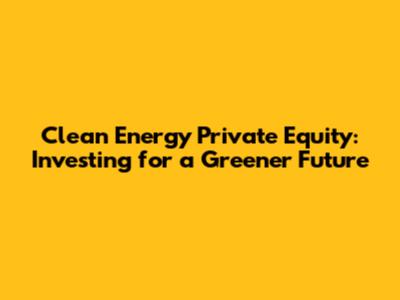 Clean Energy Private Equity: Investing For A Greener Future