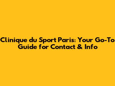 Clinique Du Sport Paris: Contact & Info