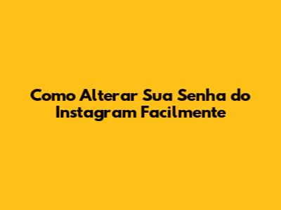 Como Alterar Sua Senha Do Instagram Facilmente