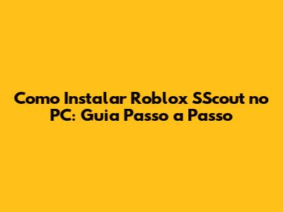 Como Instalar Roblox SScout No PC: Guia Passo A Passo