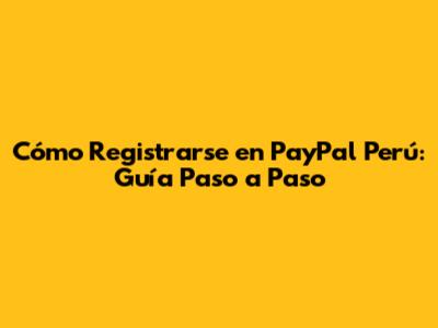Cómo Registrarse En PayPal Perú: Guía Paso A Paso