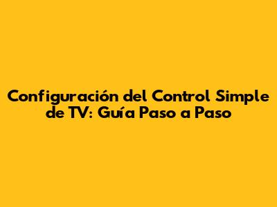 Configuración Del Control Simple De TV: Guía Paso A Paso
