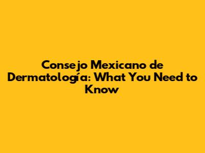 Consejo Mexicano De Dermatología: What You Need To Know