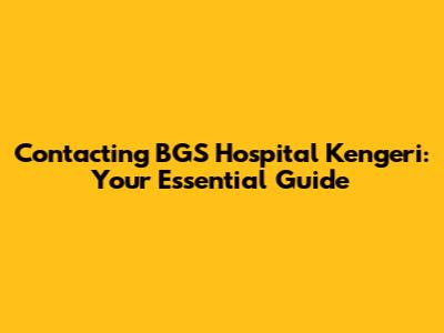 Contact BGS Hospital Kengeri: Phone Numbers And Information