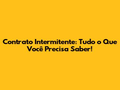 O Que é Contrato Intermitente? Desvendando o Conceito!