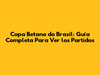 Copa Betano Do Brasil: Guía Completa Para Ver Los Partidos