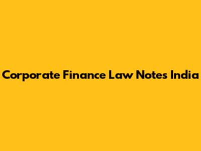 Corporate Finance Law In India: Key Notes