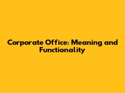Corporate Office: Meaning And Functionality