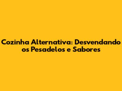 Cozinha Alternativa: Desvendando Os Pesadelos E Sabores
