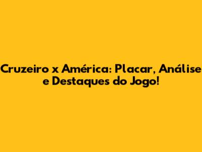 Cruzeiro X América: Placar, Análise E Destaques Do Jogo!