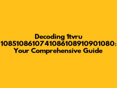 Decoding 1tvru 1085108610741086108910901080: Your Comprehensive Guide