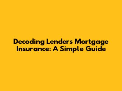 Decoding Lenders Mortgage Insurance: A Simple Guide