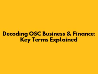 Decoding OSC Business & Finance: Key Terms Explained