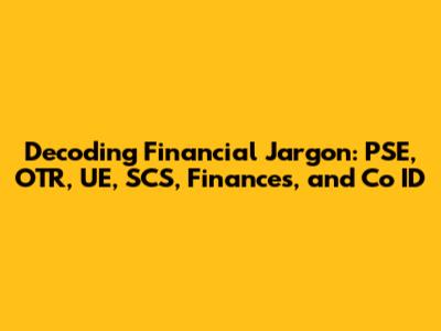 Ever find yourself lost in a sea of financial acronyms and abbreviations? You're not alone! The world of finance is filled with jargon that can seem like a foreign language. But don't worry, guys! We're here to break down some common terms, specifically PSE, OTR, UE, SCS, Finances, and Co ID, so you can navigate the financial landscape with confidence. Let's dive in and demystify these terms, making finance a little less intimidating and a lot more accessible.