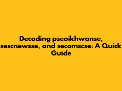 Decoding Pseoikhwanse, Sescnewsse, And Secomscse: A Quick Guide