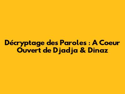 Décryptage Des Paroles : 'A Coeur Ouvert' De Djadja & Dinaz