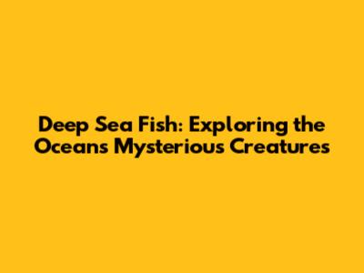 Deep Sea Fish: Exploring The Ocean's Mysterious Creatures