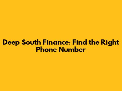 Deep South Finance: Find The Right Phone Number