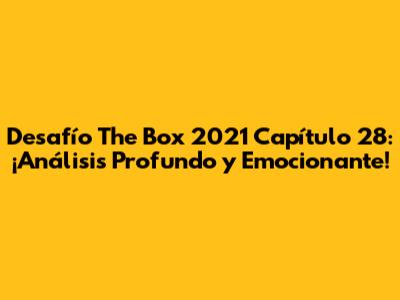 En resumen, el Desafío The Box 2021 Capítulo 28 fue un episodio lleno de acción, emoción y estrategia. Nos dejó con ganas de más y nos preparó para los desafíos que vendrán en los próximos episodios. ¡No se pierdan los siguientes capítulos, porque la competencia sigue en aumento!