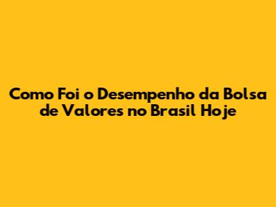 Desempenho Da Bolsa De Valores No Brasil Hoje