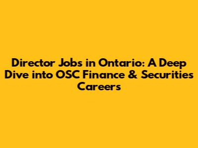 Hey guys! Are you on the hunt for a director-level job in Ontario, particularly within the finance and securities sector? Well, you've come to the right place! We're diving deep into the world of OSC (Ontario Securities Commission) finance and securities director positions, exploring what these roles entail, the skills you'll need, and how to snag one of these coveted gigs. Let's get started, shall we?