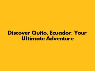 Discover Quito, Ecuador: Your Ultimate Adventure