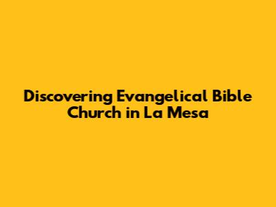 Hey everyone, let's dive into something super important: finding a church home, specifically, the Evangelical Bible Church in La Mesa. For those of you in San Diego County, or even just passing through, this church could be exactly what you're looking for. Finding the right church can feel like a big deal. It's about finding a community, a place to grow spiritually, and a place where you feel like you belong. So, whether you're new to the area, exploring your faith, or simply seeking a new church family, we're going to break down everything you need to know about the Evangelical Bible Church in La Mesa. We'll explore its values, community, service, and what makes it unique. This will help you decide if it is the right place for you. Ready to explore? Let's get started!