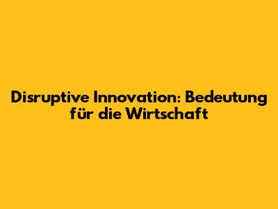 Disruptive Innovation: Bedeutung Für Die Wirtschaft