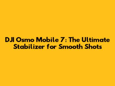 DJI Osmo Mobile 7: The Ultimate Stabilizer For Smooth Shots
