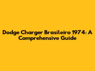 Dodge Charger Brasileiro 1974: A Comprehensive Guide