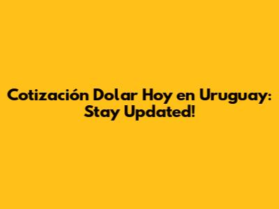 By using these resources wisely, you can stay informed about the cotizaci贸n del d贸lar hoy en Uruguay and make the best financial decisions.