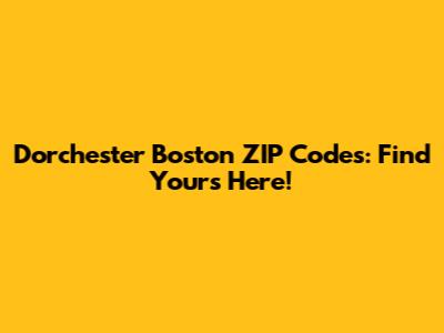 Dorchester Boston ZIP Codes: Find Yours Here!