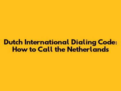 Dutch International Dialing Code: How To Call The Netherlands