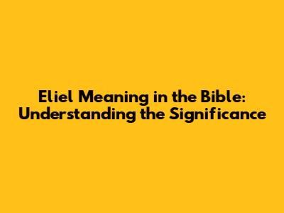 Eliel Meaning In The Bible: Understanding The Significance