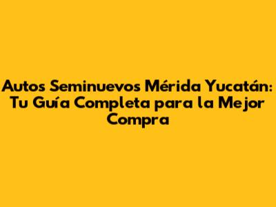 ¡Hola, amigos! Si están buscando autos seminuevos en Mérida, Yucatán, ¡han llegado al lugar correcto! En este artículo, les guiaremos a través de todo lo que necesitan saber para encontrar el coche perfecto que se ajuste a sus necesidades y presupuesto. Vamos a explorar desde dónde buscar, qué considerar al comprar, hasta los mejores consejos para asegurar una compra inteligente y sin dolores de cabeza. Así que, ¡preparémonos para sumergirnos en el emocionante mundo de los autos seminuevos en Mérida!