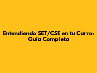 Entendiendo SET/CSE En Tu Carro: Guía Completa