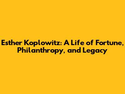 Esther Koplowitz: Life, Fortune & Philanthropy