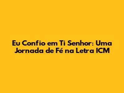 Eu confio em ti Senhor letra ICM, uma frase que ecoa profundamente no coração dos fiéis da Igreja Cristã Maranata (ICM) e de muitos cristãos ao redor do mundo. A música, um hino de fé e entrega, transcende as barreiras da língua e da cultura, tocando a alma com sua mensagem de confiança e esperança. Neste artigo, mergulharemos na análise da letra, explorando seu significado, sua importância na vida dos crentes e o impacto que ela exerce na comunidade cristã.