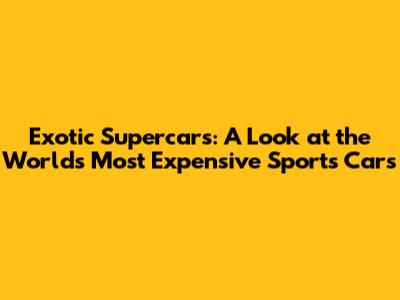 Exotic Supercars: A Look At The World's Most Expensive Sports Cars