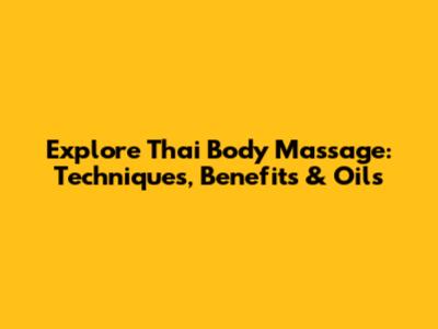 Explore Thai Body Massage: Techniques, Benefits & Oils