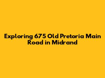 Hey guys! Let's dive into something specific today: 675 Old Pretoria Main Road in Midrand. This location is a pretty significant one in the context of Midrand, South Africa, and there's a lot to unpack. We'll explore what makes this address important, looking at its location, the types of businesses you might find there, and what makes it a hub of activity. So, buckle up, and let's get started on this little virtual tour!