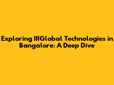 Exploring IIIGlobal Technologies In Bangalore: A Deep Dive