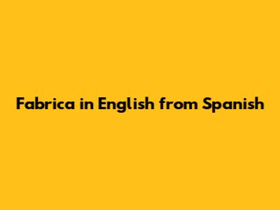Fabrica: Spanish To English Translation & Meaning