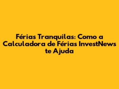 Férias Tranquilas: Como A Calculadora De Férias InvestNews Te Ajuda