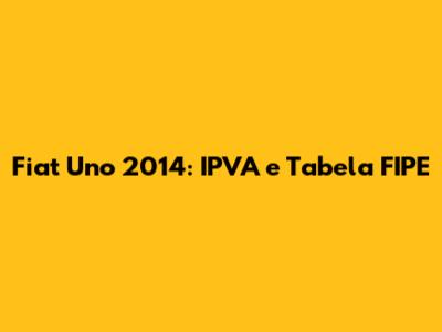 Fiat Uno 2014: IPVA E Tabela FIPE