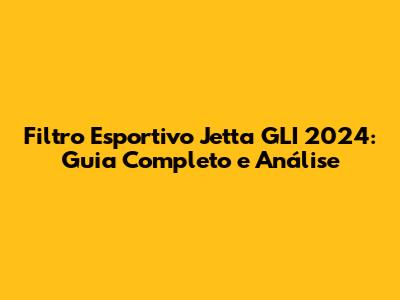 Filtro Esportivo Jetta GLI 2024: Guia Completo E Análise
