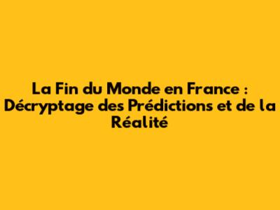 Fin Du Monde En France : Prédictions Et Réalités